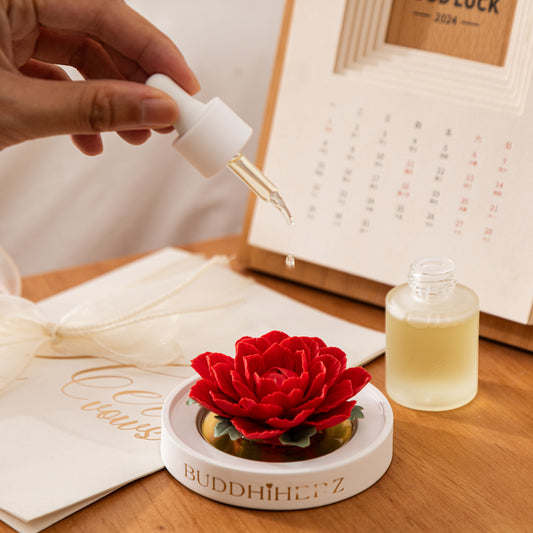 Rosen-Porzellanblume mit Duftöl