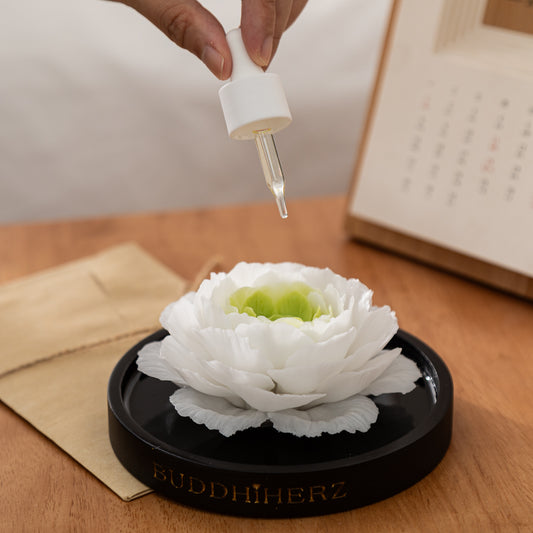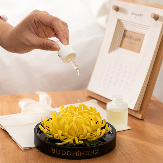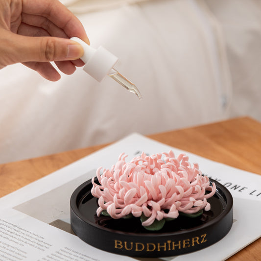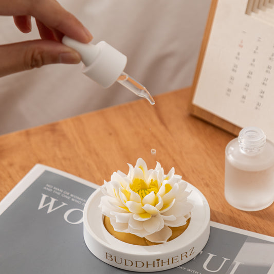 Lotos-Chrysantheme-Porzellanblume mit Duftöl