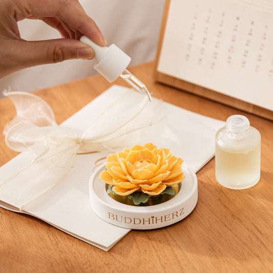 Kamelien-Porzellanblume Gelb mit Duftöl