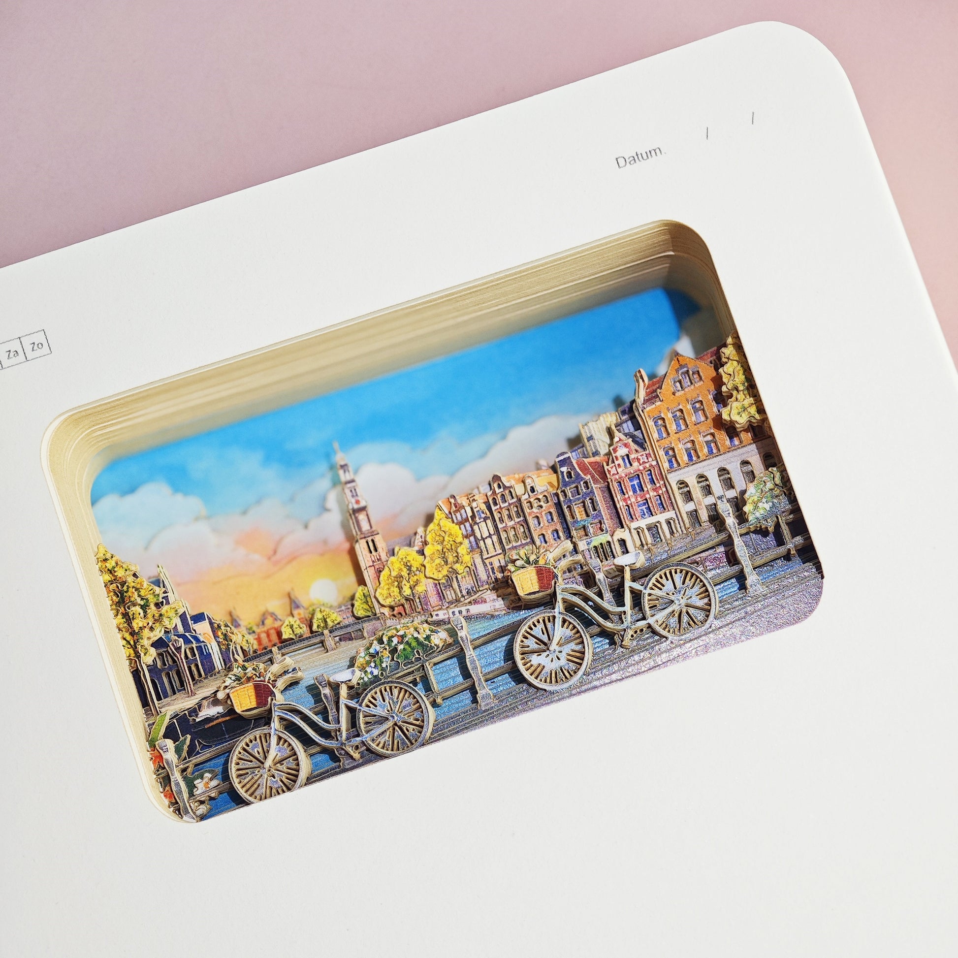 Erleben Sie die Magie der niederländischen Hauptstadt mit unserem 3D Papierkunst-Notizbuch „Amsterdam“ von Buddhiherz.