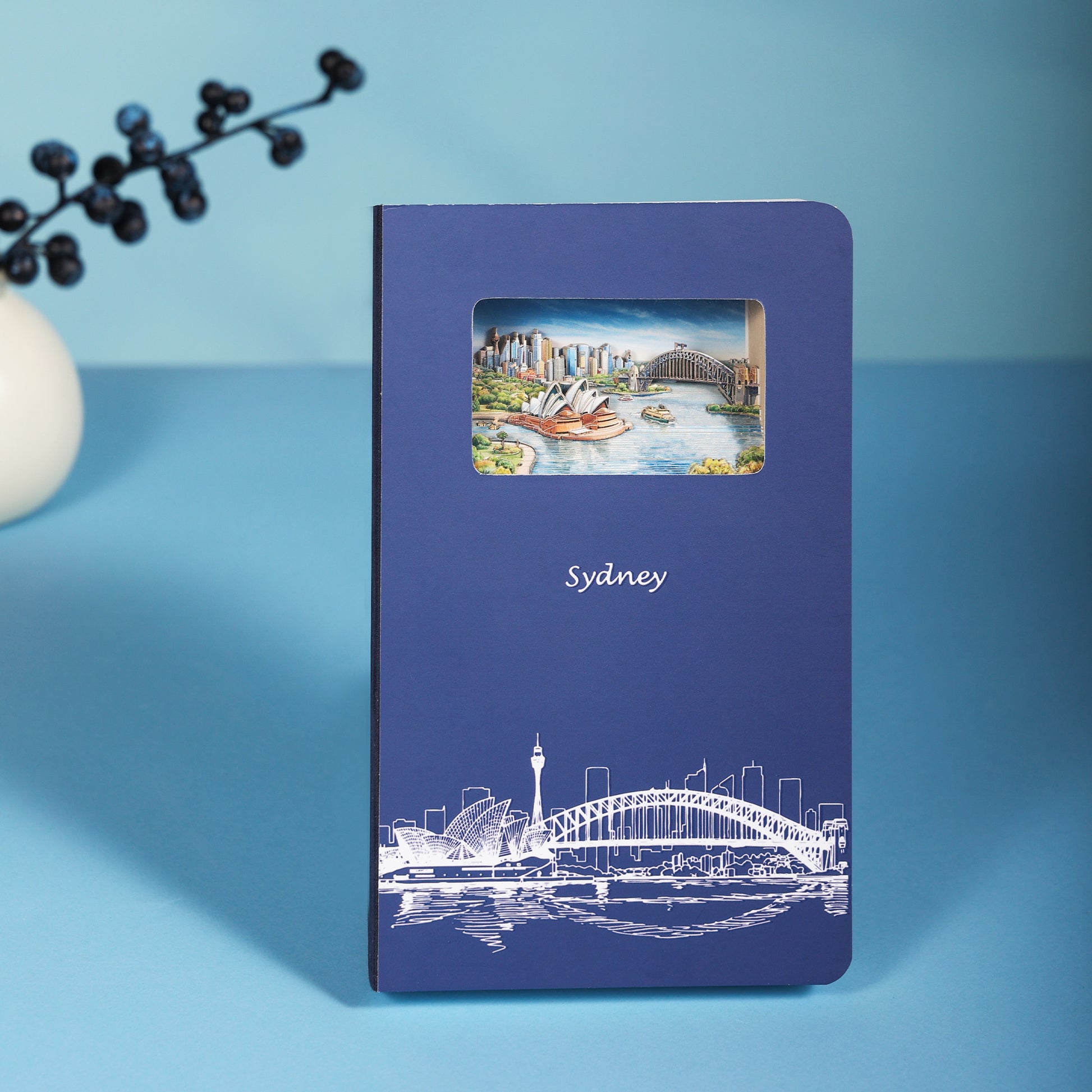 This 3D paper art notebook portrays Sydney — Australia’s most iconic harbour city — where architecture, nature, and coastal life come together in perfect balance. From the world-famous waterfront skyline to the rhythm of everyday urban life, Sydney is presented as a city shaped by water, light, and openness.