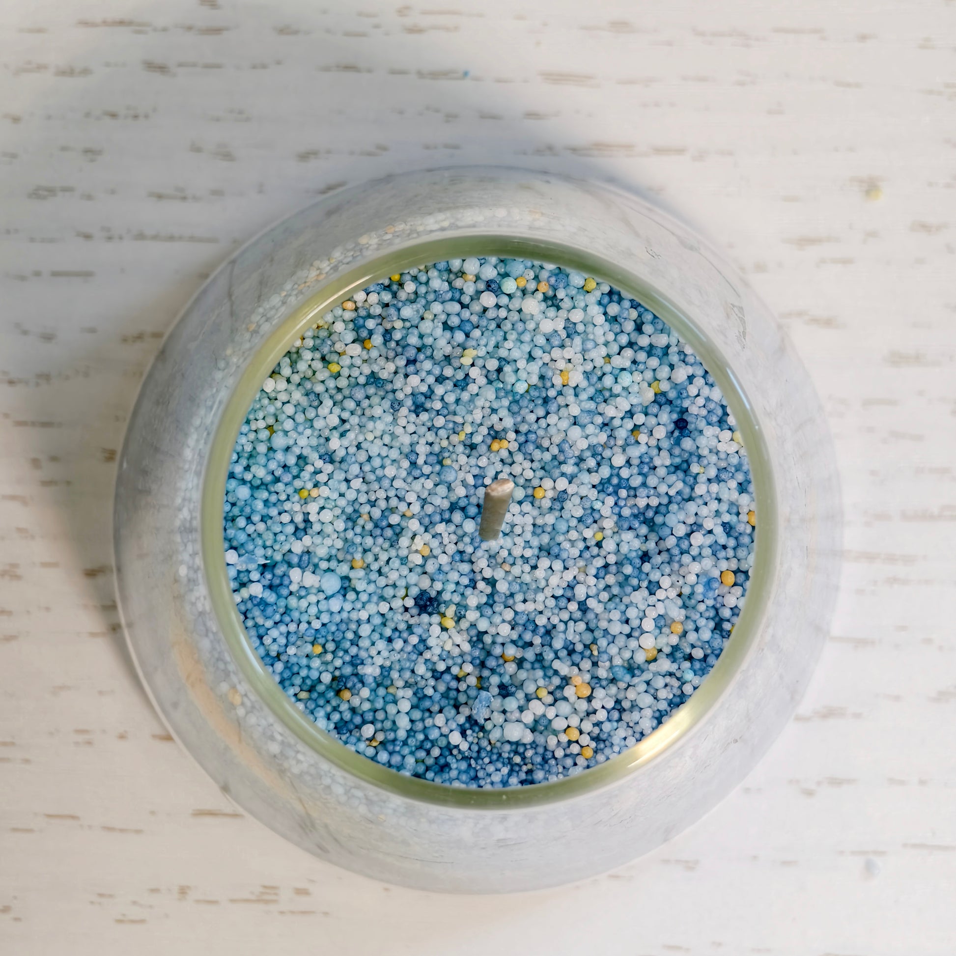 5. Layer the different colors of wax granules one after the other into the glass.