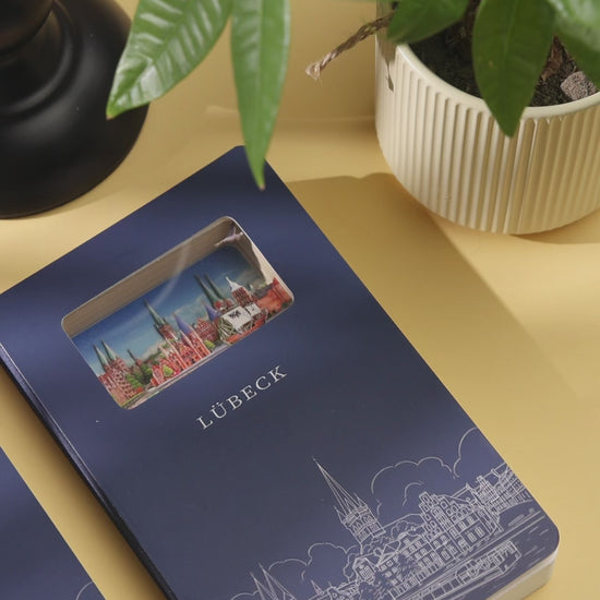 Dieses 3D-Papierkunst-Notizbuch zeigt die historische Altstadt von Lübeck – ein UNESCO-Weltkulturerbe und Sinnbild der Hansezeit. Prägende Bauwerke wie die St.-Jakobi-Kirche, die St.-Marien-Kirche, das Holstentor sowie die charakteristischen Giebelhäuser formen ein eindrucksvolles Stadtbild voller Geschichte und maritimer Eleganz.