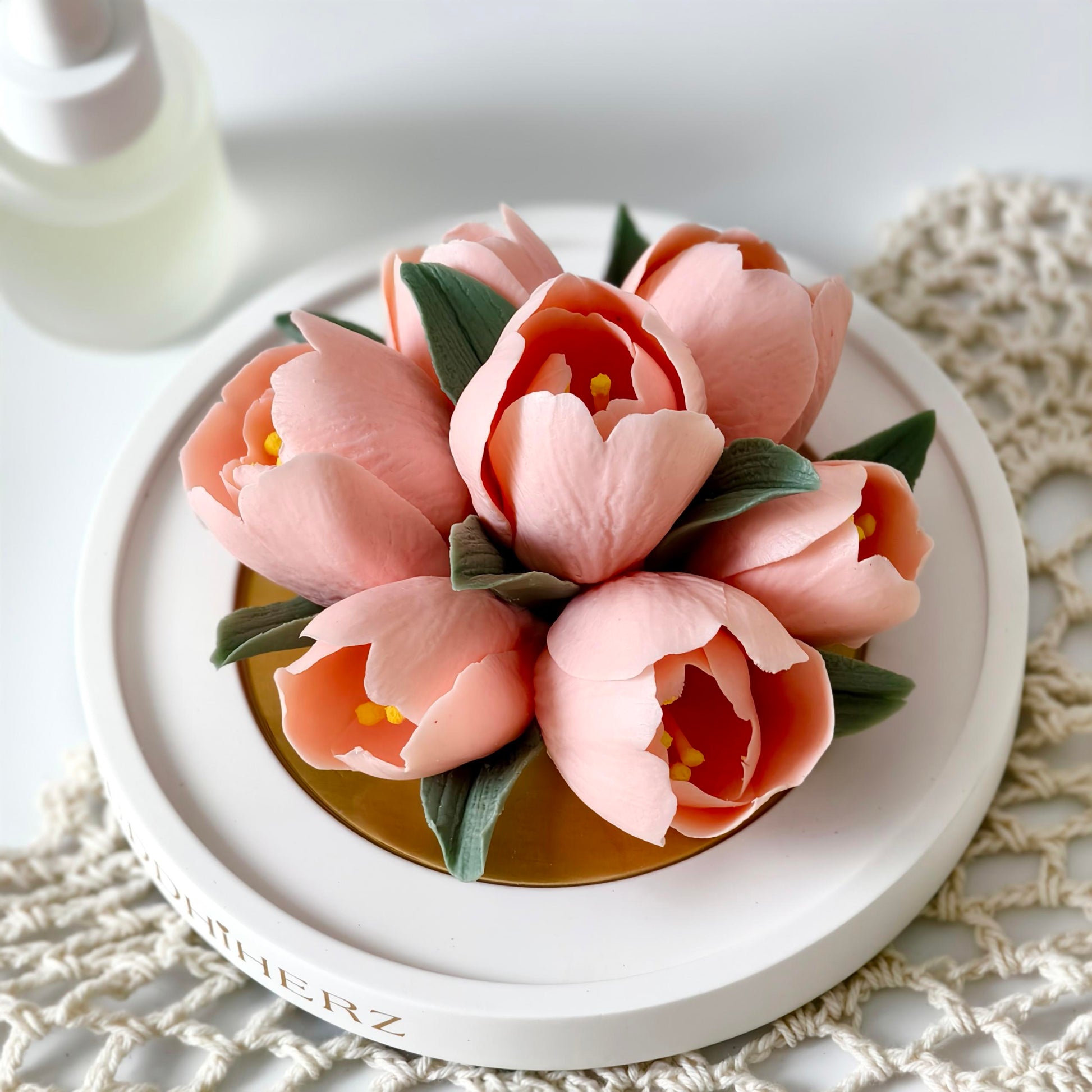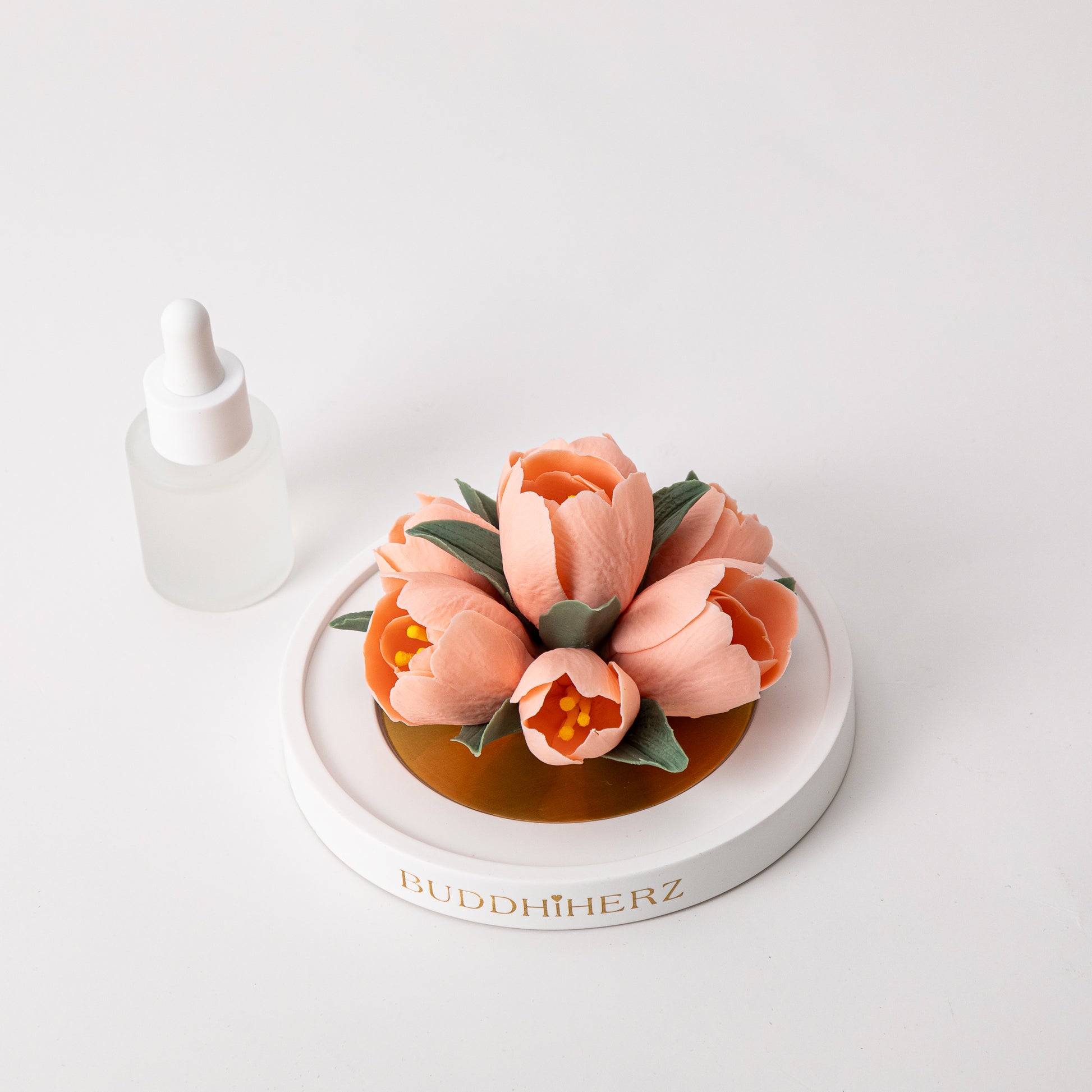 Entdecken Sie die zarte Anmut und den frischen Duft der Tulpen-Porzellanblume mit Duftöl. Diese handgefertigte Porzellanblume in einem sanften Rosaton bringt eine elegante und duftende Atmosphäre in Ihr Zuhause. Der natürliche Duft der Tulpe, ergänzt durch feine blumige Noten, verleiht jedem Raum eine luxuriöse und beruhigende Note. Perfekt als stilvolle Dekoration oder als besonderes Geschenk für Ihre Liebsten.