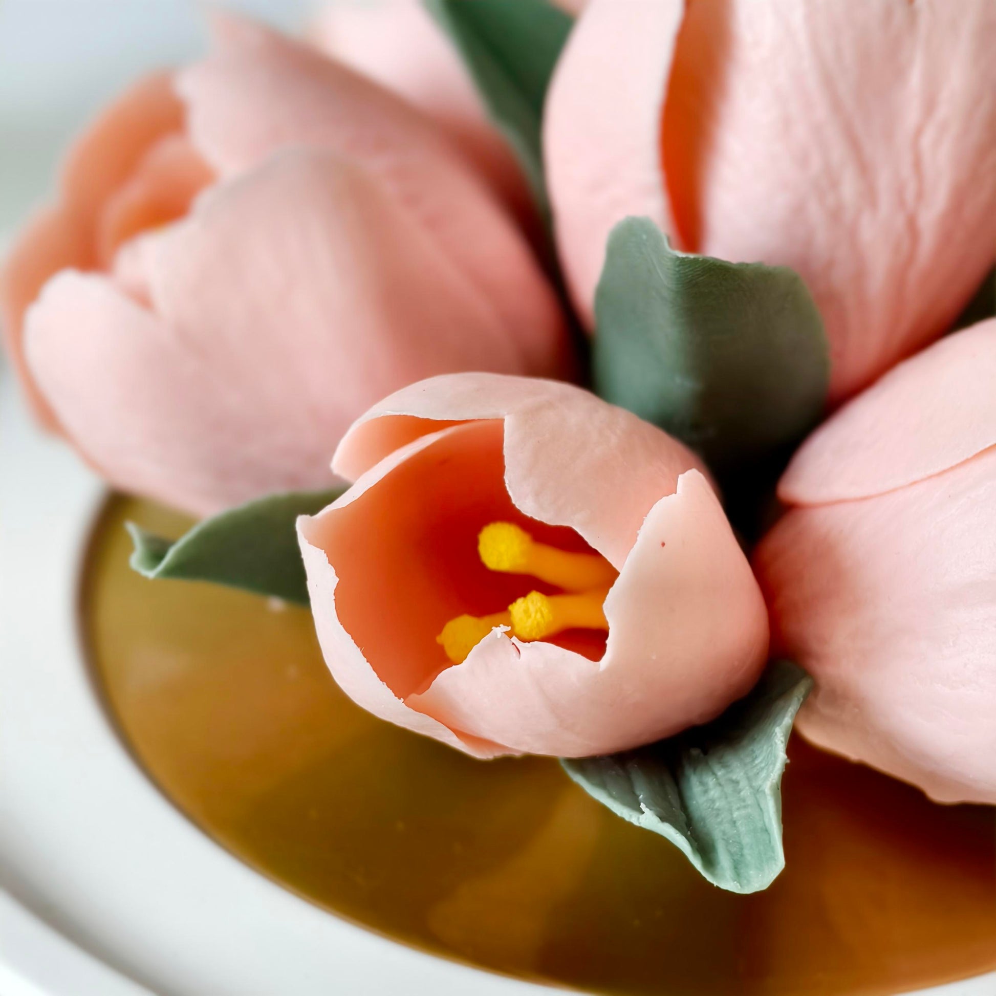 Rosa Tulpen-Porzellanblume mit Duftöl